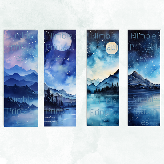 Printable Bookmarks Bundle Night Sky Theme, Digital Downloads, Watercolor bookmark, 30 PNG and JPG Bookmark Sublimation