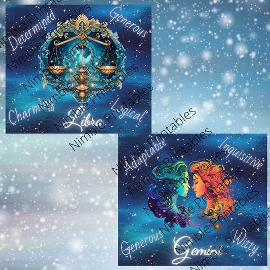 Zodiac Sign Tumbler Wrap Bundle, 20z Skinny Tumbler Sublimation Design Digital Download PNG Colorful Tumbler Wrap 12 Designs