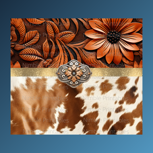 Western Tumbler Wrap Design 20z Tumbler Digital Download PNG Digital File Sublimation Tumbler Wrap Wood Engraved Cowhide Tumbler Wrap