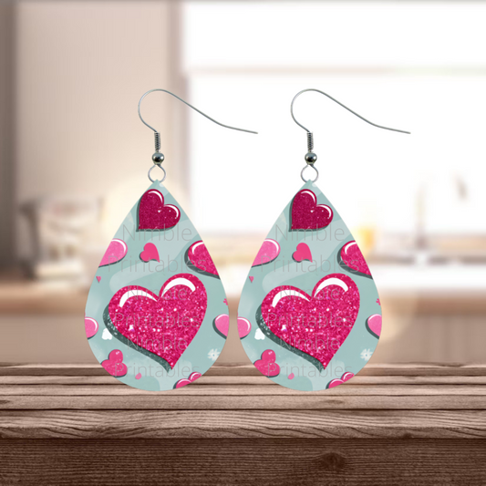 Valentines Day Teardrop Earrings PNG Sublimation Earring Designs Teardrop Earring Sublimation Digital Download Instant Download Hearts PNG
