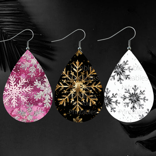 Teardrop Earring PNG Bundle Snowflake Earrings Sublimation Earring Designs Digital Download Instant Download Pink PNG