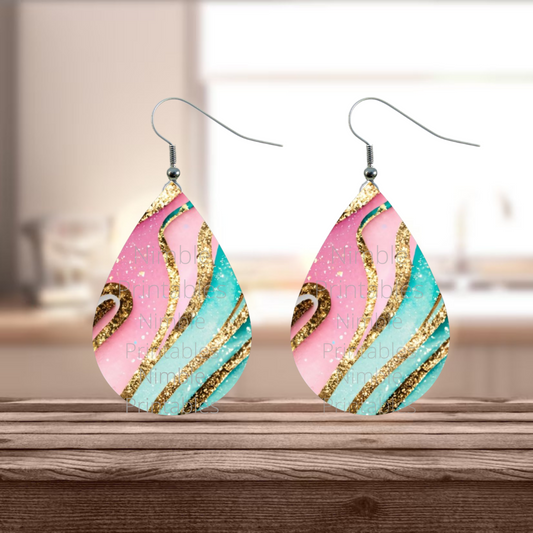 Teardrop Earring PNG Pink and Green Glitter Earrings Teardrop Earring PNG Sublimation Earring Designs Digital Download Instant Download