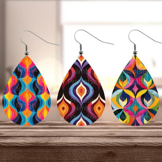 Teardrop Earring PNG Bundle Retro Print PNG Earrings Sublimation Earring Designs Digital Download Instant Download Groovy PNG, Trendy png