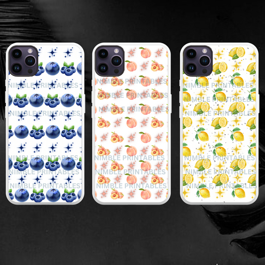 Fruit Print Sublimation Phone Case PNG, Phone Case Design Digital Download Cherry PNG, Passion Fruit PNG, Lemon png, Orange png, Glitter png