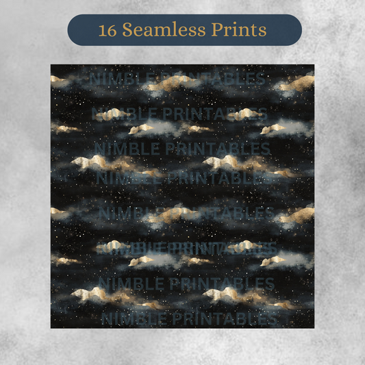 Celestial Night Sky Digital Paper Pack Seamless Patter Scrapbook Paper Watercolor Background, Digital Download, Moon, Stars, Night Sky