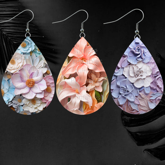 3D Floral Teardrop Earrings PNG Sublimation Earring Designs Teardrop Earring Sublimation Digital Download Instant Download Floral PNG