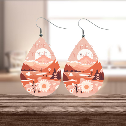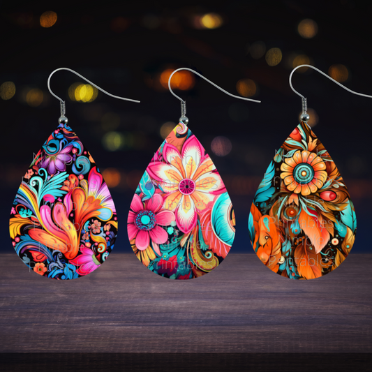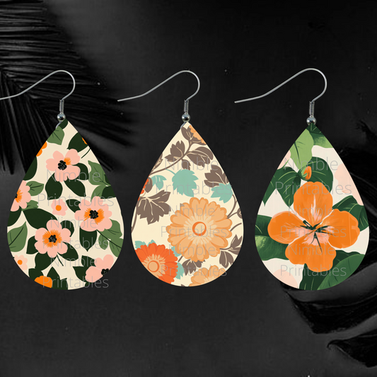 Teardrop Earring PNG Earring Bundle Orange & Pink Floral Sublimation Earring Designs Digital Download Instant Download Floral PNG Retro PNG