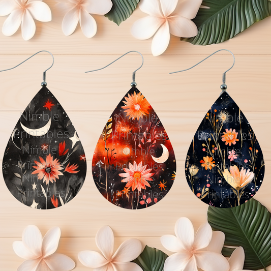 Celestial Wildflower Bundle Teardrop Earring PNG Earrings Sublimation Earring Designs Digital Download Instant Download Moon PNG, Floral PNG