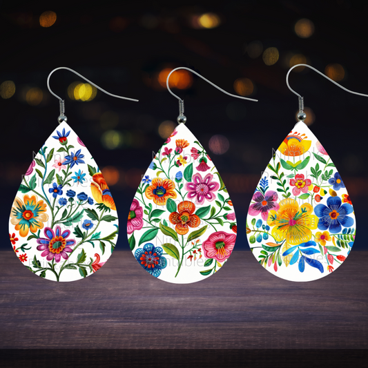 Mexican Floral Teardrop Earring PNG Earrings Sublimation Earring Designs Digital Download Instant Download Boho PNG, Eithnic PNG