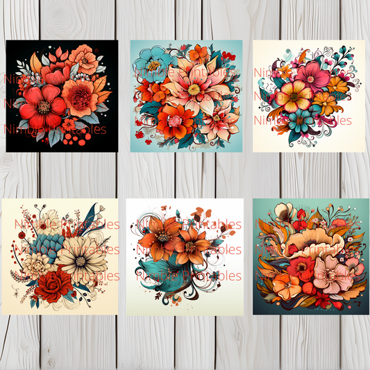 Vintage Boho Floral Square Coaster PNG, Coaster Bundle, Floral png, Boho PNG, Instant Downloads Sublimation Design
