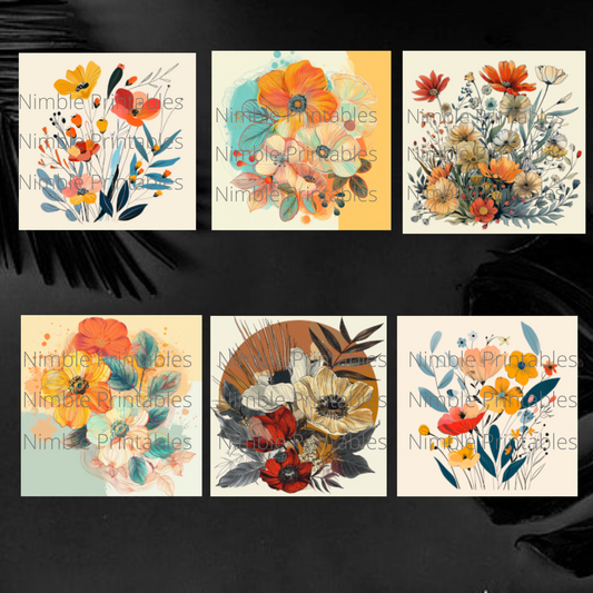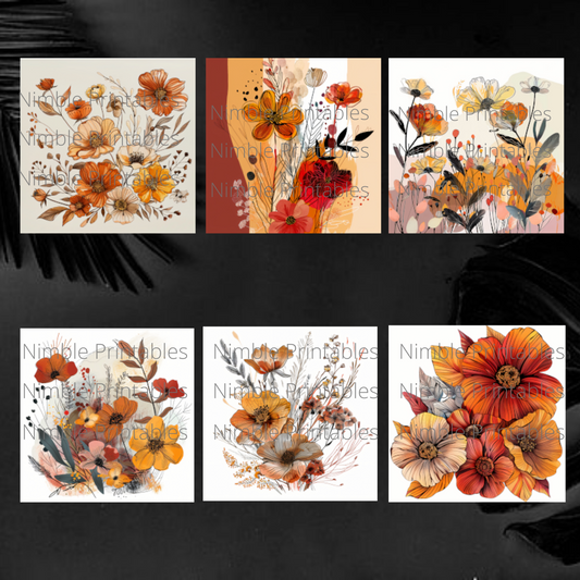 Autumn Boho Floral Square Coaster PNG, Coaster Bundle, Floral png, Boho PNG, Instant Downloads Sublimation Design