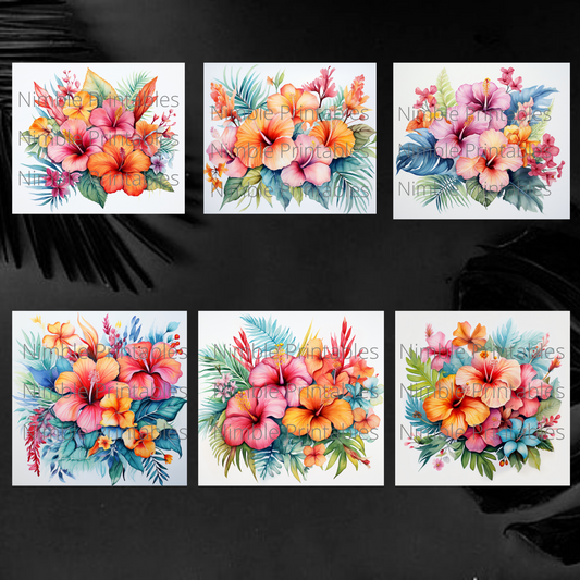 Tropical Boho Floral Square Coaster png, Coaster Bundle, Floral png, Boho png, Instant Downloads Sublimation Design