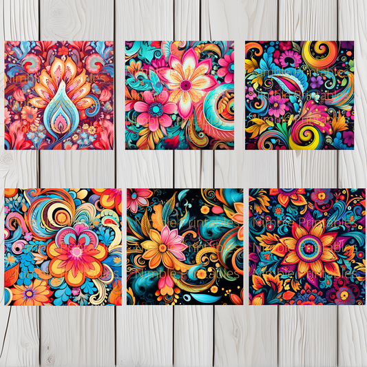 Boho Hippie Floral Square Coaster PNG, Coaster Bundle, Floral png, Boho PNG, Instant Downloads Sublimation Design Hippie png