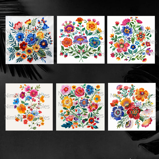 Mexican Floral Square Coaster PNG, Boho PNG, Square Coaster PNG, Instant Downloads Sublimation Design, Ethnic Images, 300 dpi