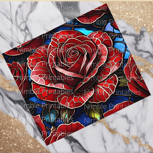 Rose Stained Glass Tumbler Wrap 20oz Skinny Tumbler Sublimation Design Digital Download PNG Tumbler Skinny Tumbler Red Rose Stained Glass