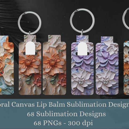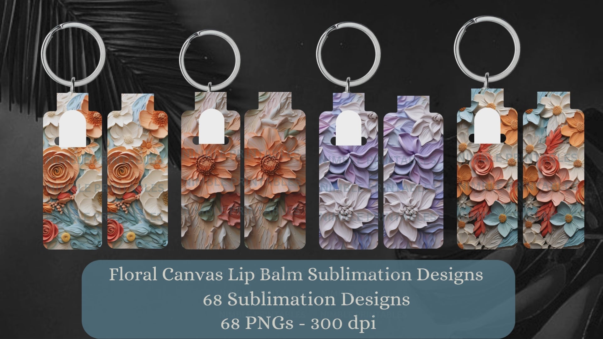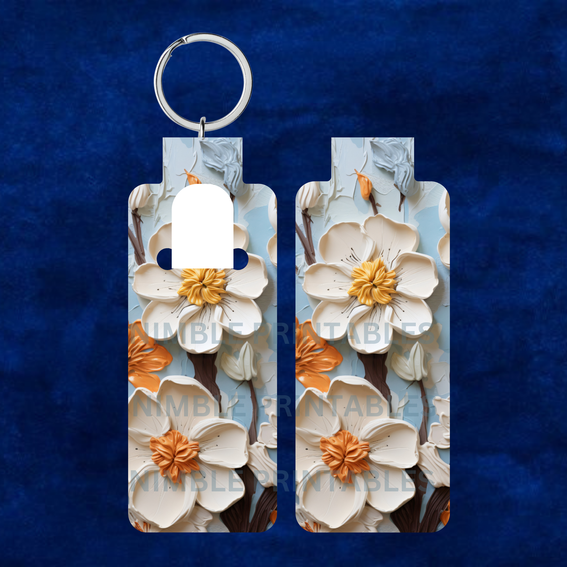 3D Floral Skinny Lip Balm Sublimation Bundle Skinny Lip Balm Holder PNG Key Ring Tag Fob Digital Downloads, Instant Download