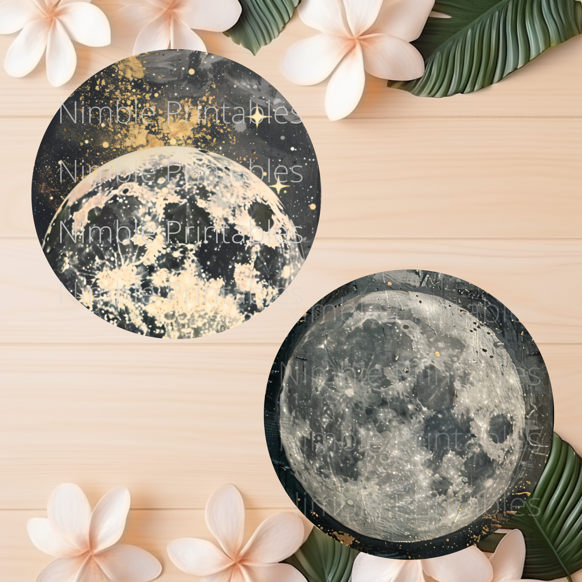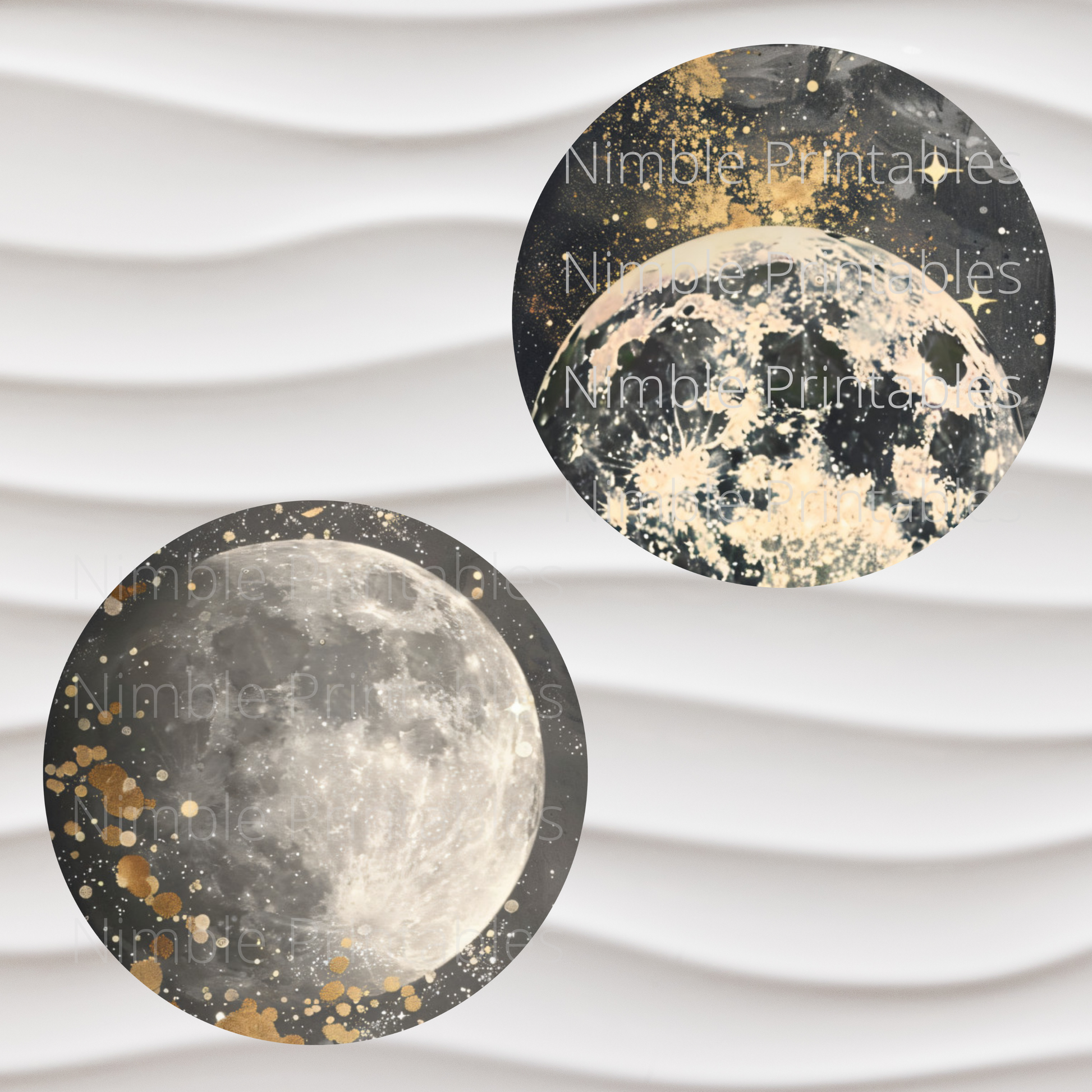Celestial Moon Car Coaster PNG, Instant Downloads Bundle, Sublimation Design, Car Accessories, Star PNG