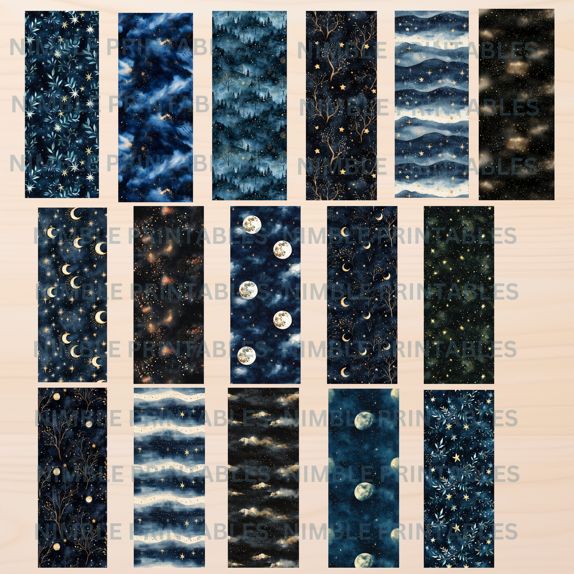 - 1 zip file with 16 PNG zip files individual bookmark files no watermarks 300 dpi. 5 X 13 inches