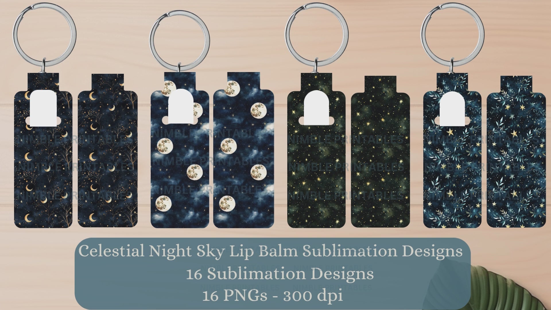 Celestial Night Sky Skinny Lip Balm Holder PNG Sublimation Bundle Key Ring Tag Fob Digital Downloads, Instant Download Galaxy PNG Space PNG