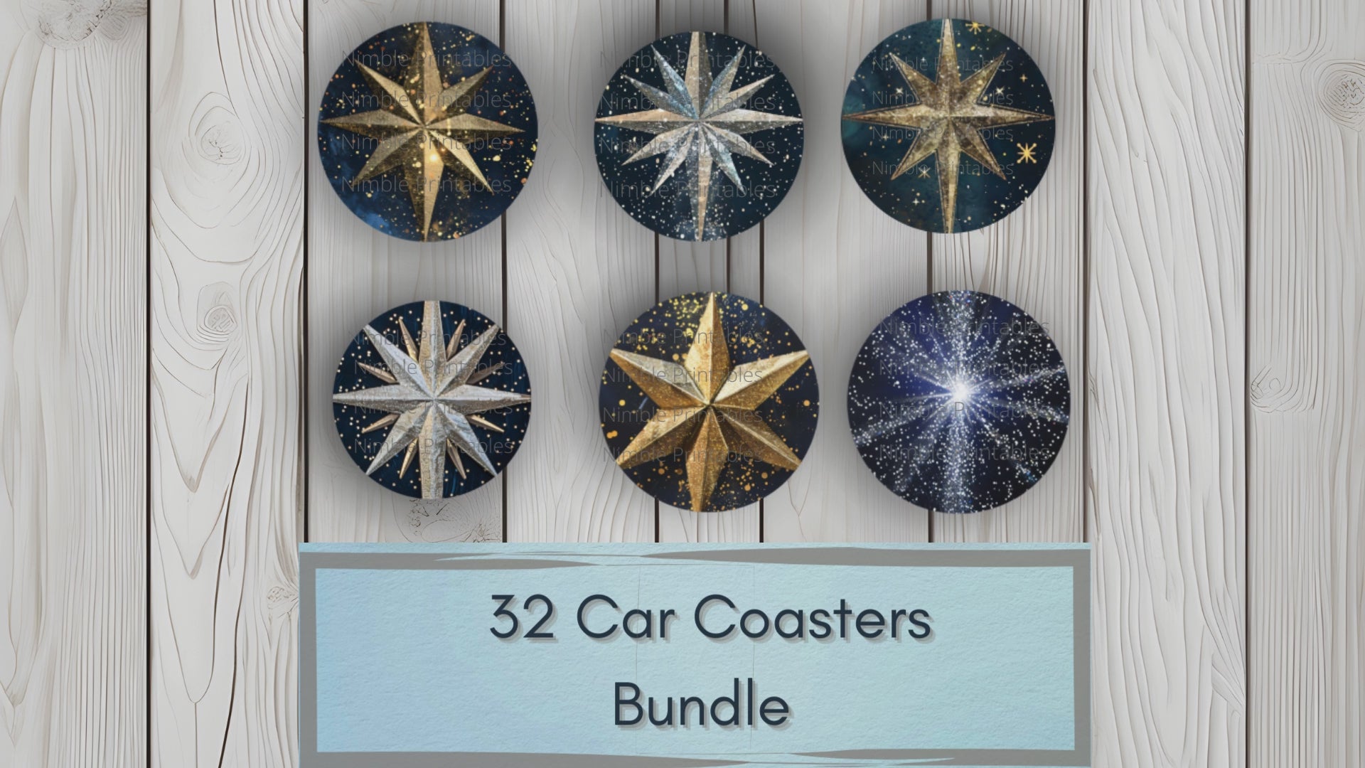 Celestial Star Car Coaster PNG, North Star PNG, Instant Downloads Sublimation Bundle Design Car Accessories