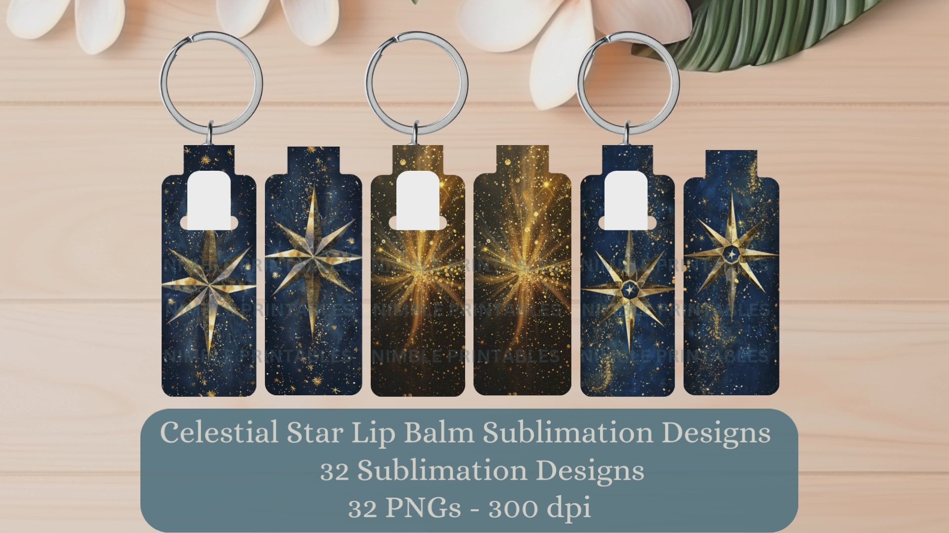 Celestial Stars Skinny Lip Balm Sublimation Bundle 32 Skinny Lip Balm Holder PNGs Key Ring Tag Fob Digital Downloads, Instant Download