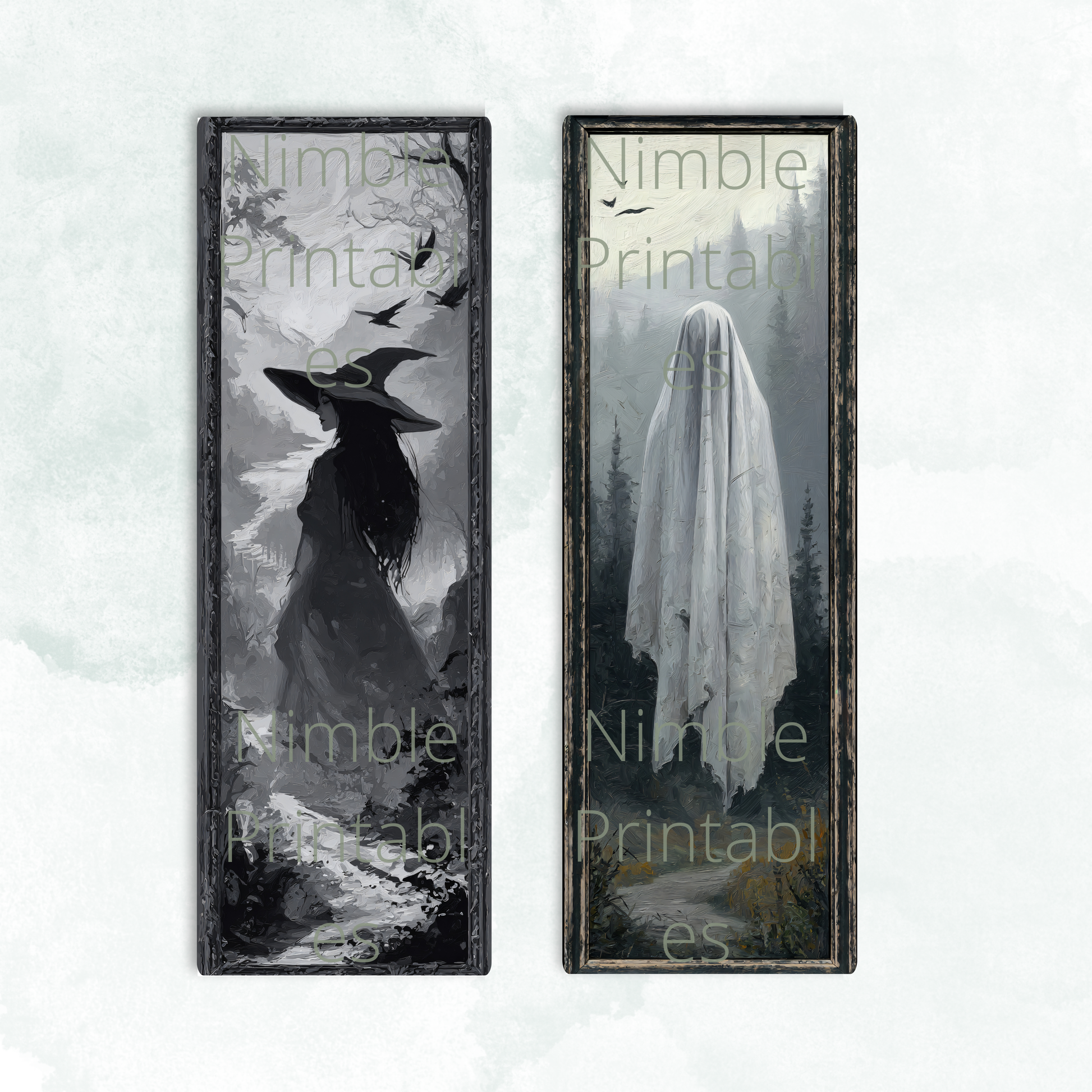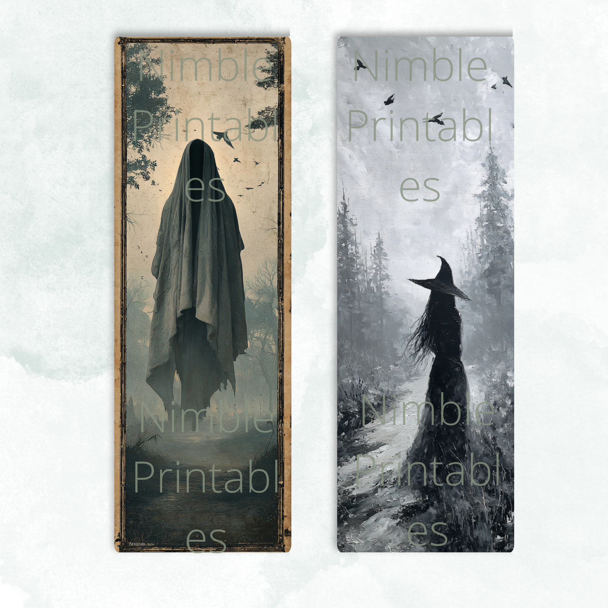 Printable Halloween Bookmarks Bundle PNG & JPG, Spooky Goth Witch, Ghost, Skeleton Fantasy, Dark Academia, Digital Instant Download