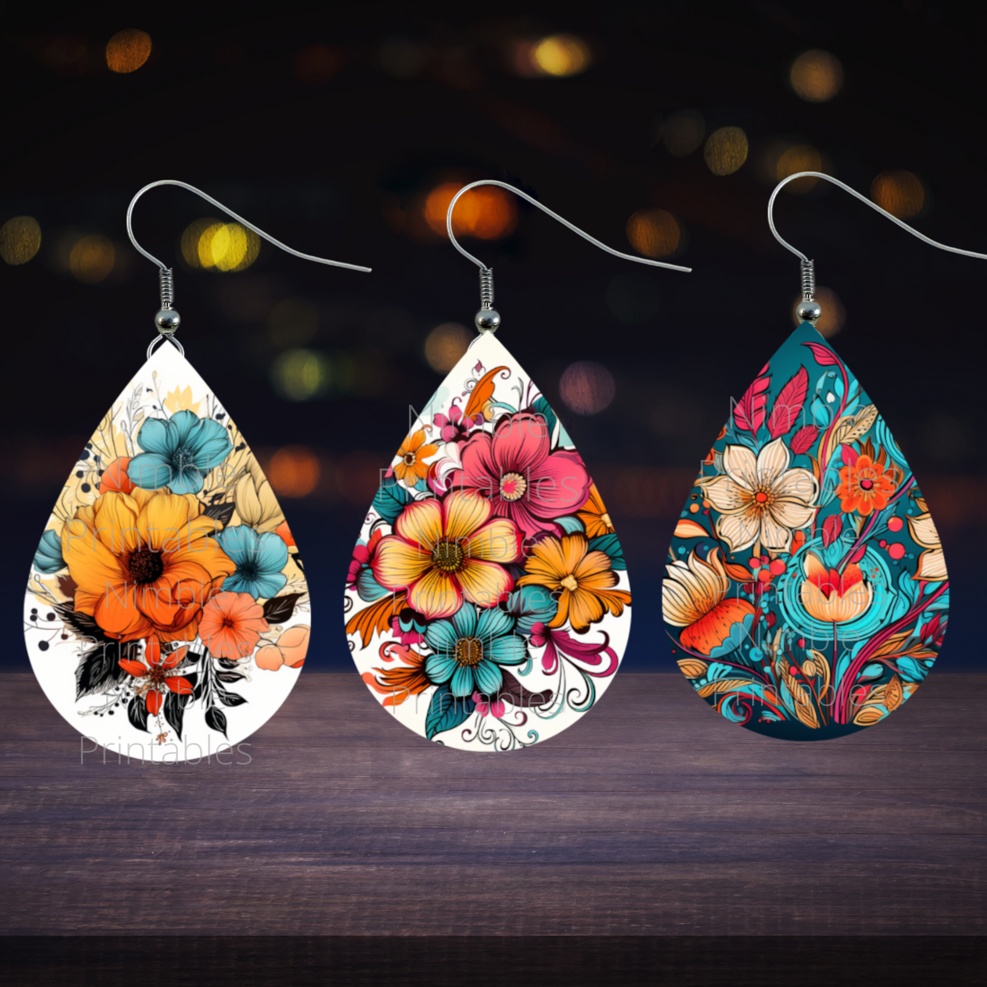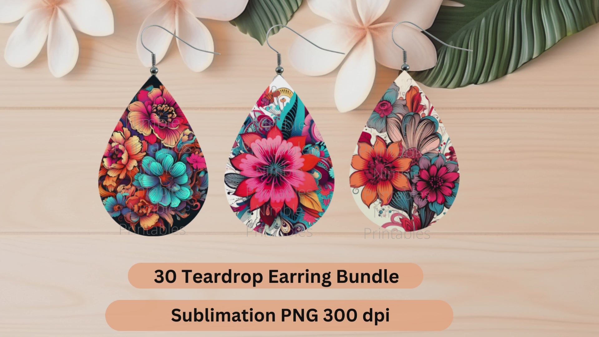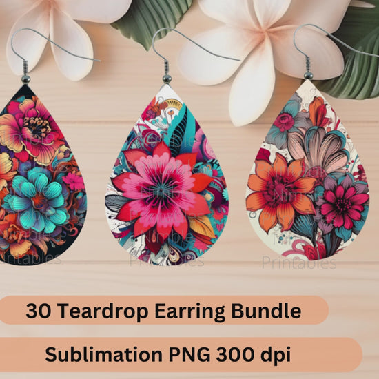 Teardrop Earring PNG Bundle 30 Boho Floral Earrings Teardrop Earring PNG Sublimation Earring Designs Digital Download Instant Download