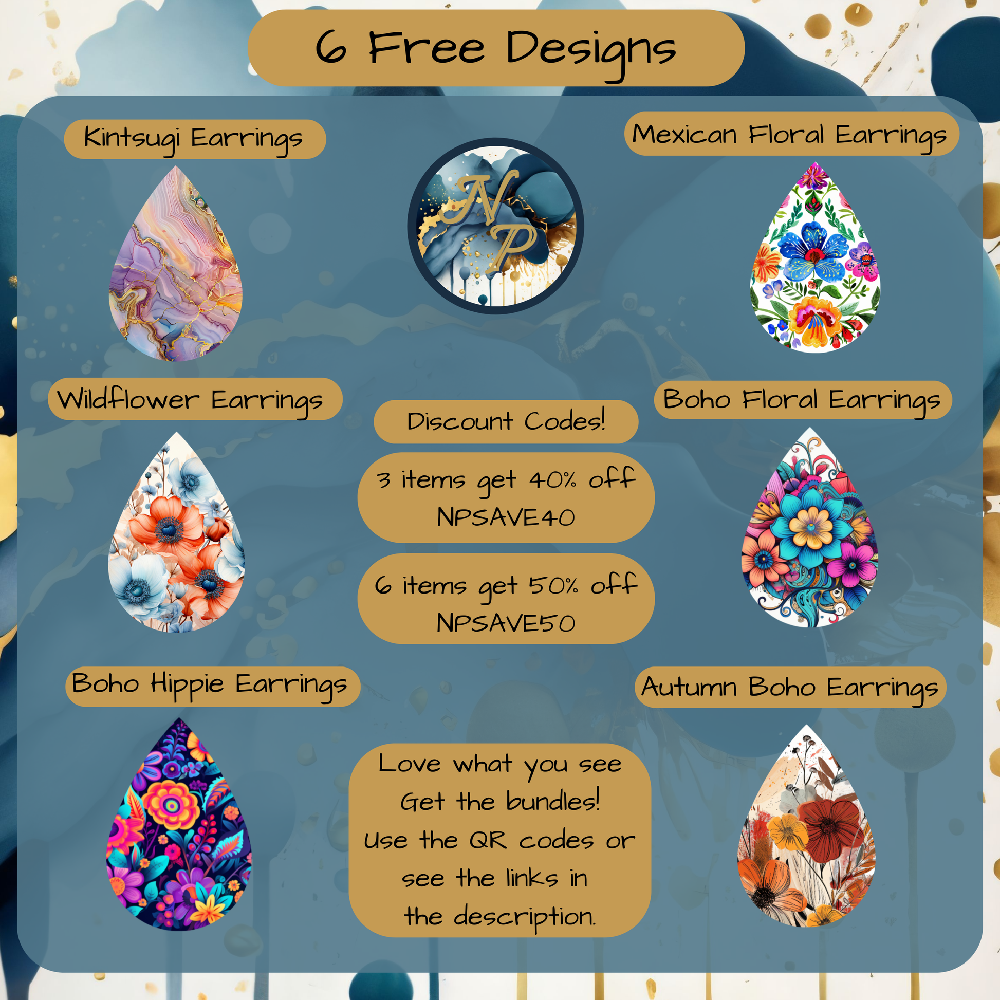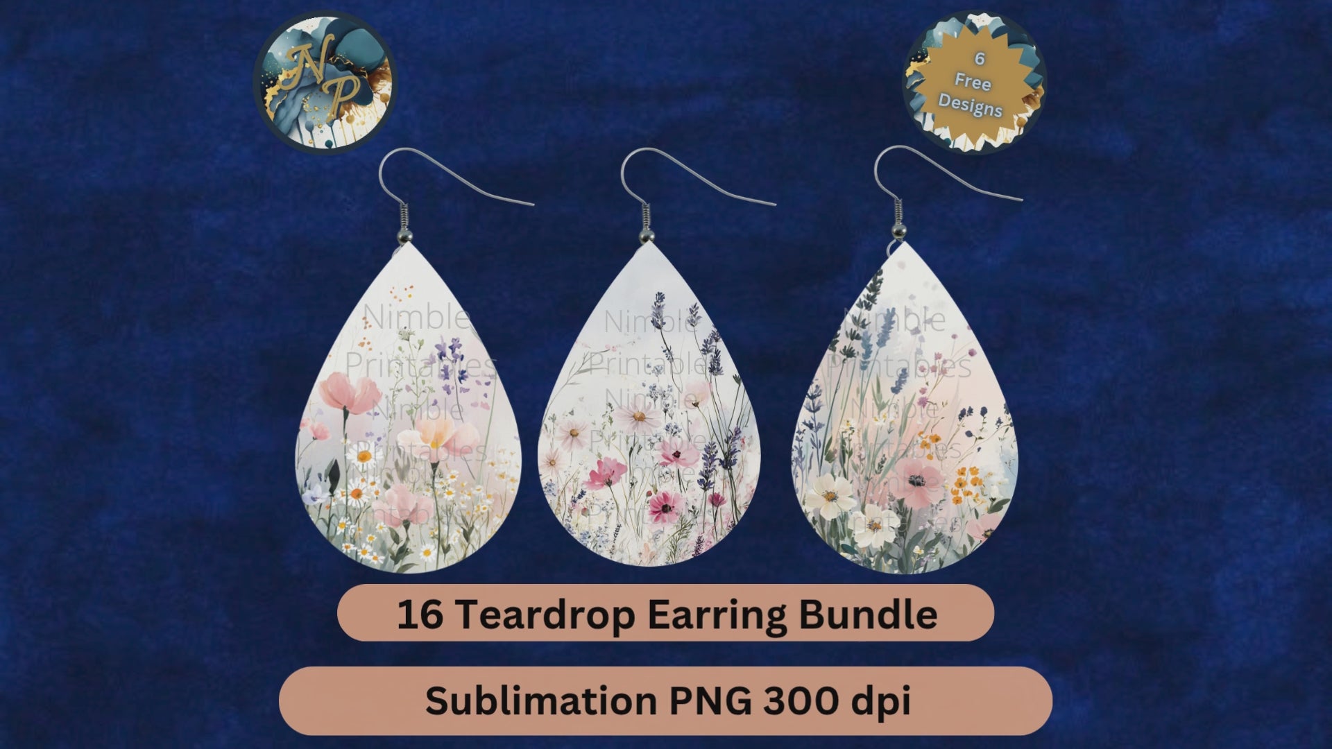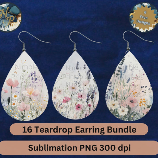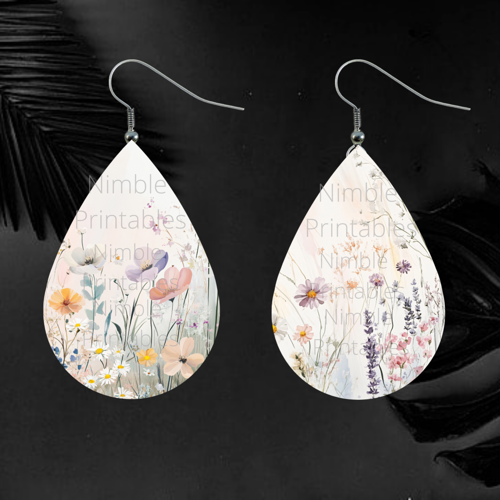 Teardrop Earring PNG Bundle Wildflower Earring Sublimation Designs Instant Digital Download Floral PNG