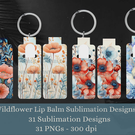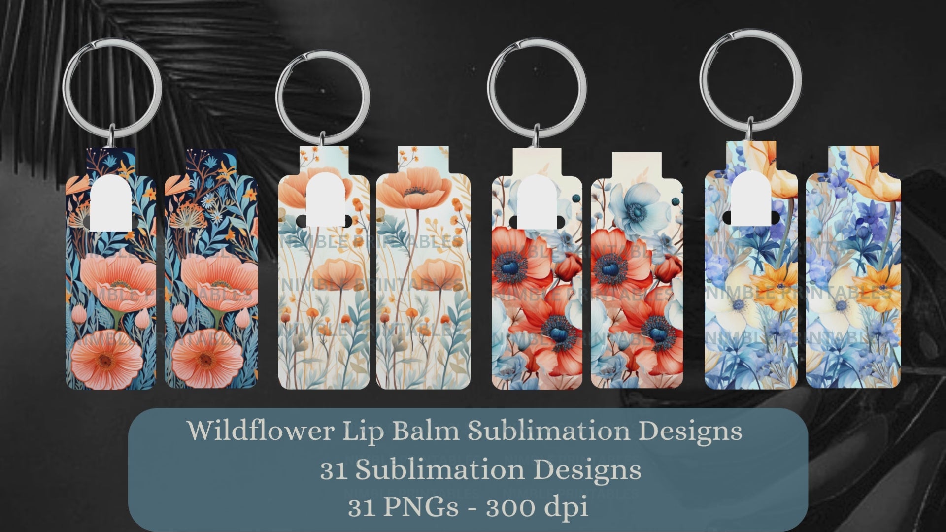 Wildflower Skinny Lip Balm Sublimation Bundle Skinny Lip Balm Holder PNG Key Ring Tag Fob Digital Downloads, Instant Download